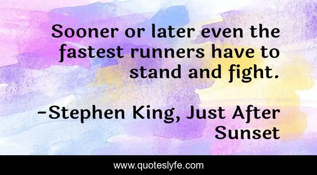 This page presents the quote "Sooner or later even the fastest runners have to stand and fight.". Author of this quote is Stephen King, Just After Sunset. .