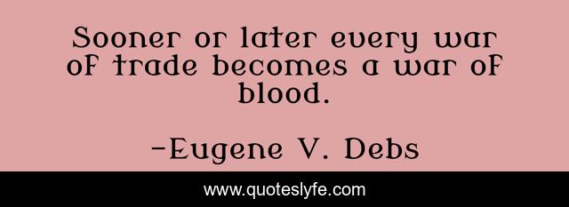 This page presents the quote "Sooner or later every war of trade becomes a war of blood.". Author of this quote is Eugene V. Debs. This quote is about trade, war, blood,.