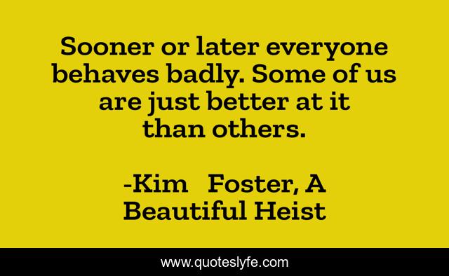 This page presents the quote "Sooner or later everyone behaves badly. Some of us are just better at it than others.". Author of this quote is Kim Foster, A Beautiful Heist. This quote is about behaviour, attitude, philosophy, humor,.