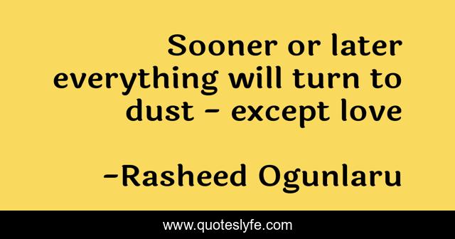 "Rasheed Ogunlaru Quotes." Quoteslyfe.com, 2025. Fri. 05 Dec. 2025. <https://www.quoteslyfe.com/quote/Sooner-or-later-everything-will-turn-to-185857>.