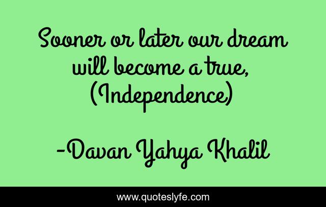 This page presents the quote "Sooner or later our dream will become a true, (Independence)". Author of this quote is Davan Yahya Khalil. This quote is about kurdistan, dream,.