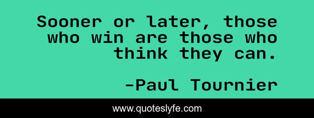 This page presents the quote "Sooner or later, those who win are those who think they can.". Author of this quote is Paul Tournier. This quote is about win, think, sooner or later,.