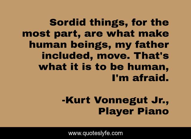 This page presents the quote "Sordid things, for the most part, are what make human beings, my father included, move. That's what it is to be human, I'm afraid.". Author of this quote is Kurt Vonnegut Jr., Player Piano. .