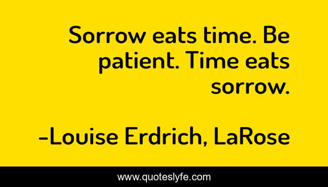 "Louise Erdrich, LaRose Quotes." Quoteslyfe.com, 2025. Sat. 06 Dec. 2025. <https://www.quoteslyfe.com/quote/Sorrow-eats-time-Be-patient-Time-eats-122586>.