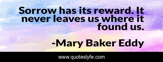 This page presents the quote "Sorrow has its reward. It never leaves us where it found us.". Author of this quote is Mary Baker Eddy. .