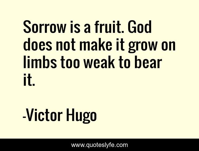 This page presents the quote "Sorrow is a fruit. God does not make it grow on limbs too weak to bear it.". Author of this quote is Victor Hugo. This quote is about sympathy, sorrow, fruit,.