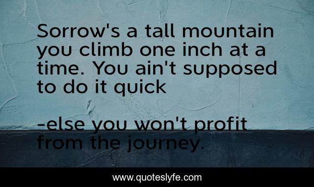This page presents the quote "Sorrow's a tall mountain you climb one inch at a time. You ain't supposed to do it quick". Author of this quote is else you won't profit from the journey.. This quote is about skip rock shallows, jan watson,.