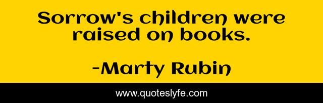 This page presents the quote "Sorrow's children were raised on books.". Author of this quote is Marty Rubin. This quote is about sorrow, books,.
