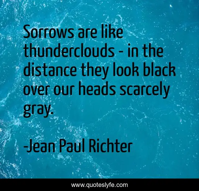 "Jean Paul Richter Quotes." Quoteslyfe.com, 2025. Fri. 05 Dec. 2025. <https://www.quoteslyfe.com/quote/Sorrows-are-like-thunderclouds-in-the-distance-276624>.