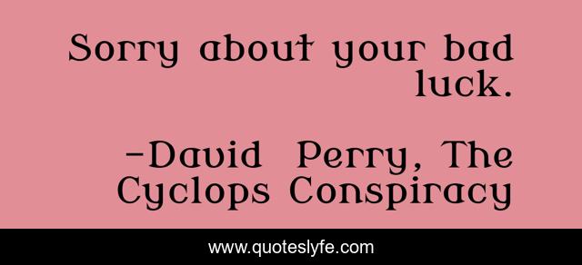 "David Perry, The Cyclops Conspiracy Quotes." Quoteslyfe.com, 2025. Fri. 05 Dec. 2025. <https://www.quoteslyfe.com/quote/Sorry-about-your-bad-luck-149333>.