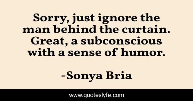 This page presents the quote "Sorry, just ignore the man behind the curtain. Great, a subconscious with a sense of humor.". Author of this quote is Sonya Bria. .