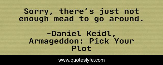 "Daniel Keidl, Armageddon: Pick Your Plot Quotes." Quoteslyfe.com, 2025. Fri. 05 Dec. 2025. <https://www.quoteslyfe.com/quote/Sorry-there-s-just-not-enough-mead-242784>.