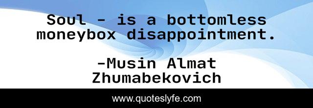 This page presents the quote "Soul - is a bottomless moneybox disappointment.". Author of this quote is Musin Almat Zhumabekovich. .