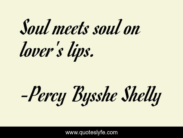 This page presents the quote "Soul meets soul on lover's lips.". Author of this quote is Percy Bysshe Shelly. .
