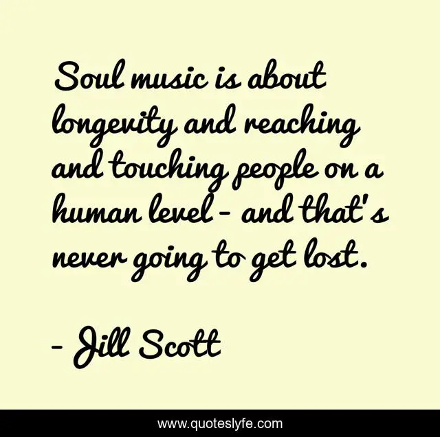 "Jill Scott Quotes." Quoteslyfe.com, 2025. Mon. 08 Dec. 2025. <https://www.quoteslyfe.com/quote/Soul-music-is-about-longevity-and-reaching-296055>.
