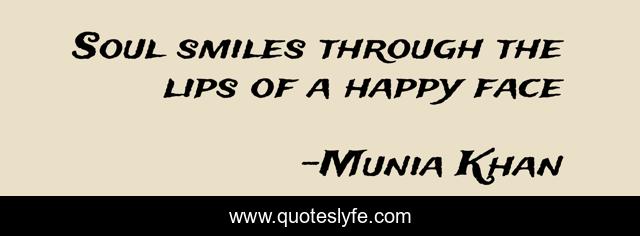 This page presents the quote "Soul smiles through the lips of a happy face". Author of this quote is Munia Khan. This quote is about beautiful, smiles, life, happy-soul, happy, souls, soul, delight, smiling-face,.