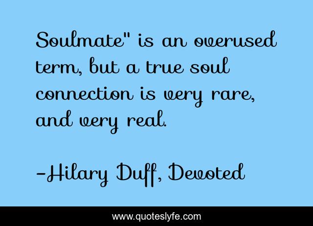 This page presents the quote "Soulmate" is an overused term, but a true soul connection is very rare, and very real.". Author of this quote is Hilary Duff, Devoted. This quote is about friendship, soulmate, love, soul, affection,.