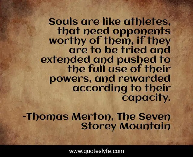 "Thomas Merton, The Seven Storey Mountain Quotes." Quoteslyfe.com, 2025. Fri. 05 Dec. 2025. <https://www.quoteslyfe.com/quote/Souls-are-like-athletes-that-need-opponents-4906>.