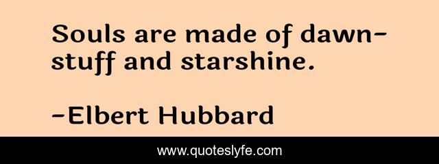 This page presents the quote "Souls are made of dawn-stuff and starshine.". Author of this quote is Elbert Hubbard. .