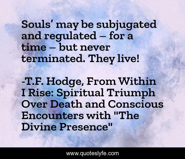 "T.F. Hodge, From Within I Rise: Spiritual Triumph Over Death and Conscious Encounters with "The Divine Presence" Quotes." Quoteslyfe.com, 2025. Sun. 07 Dec. 2025. <https://www.quoteslyfe.com/quote/Souls-may-be-subjugated-and-regulated-for-139537>.