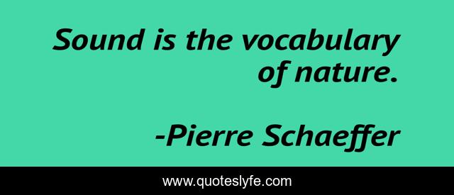This page presents the quote "Sound is the vocabulary of nature.". Author of this quote is Pierre Schaeffer. This quote is about sound, vocabulary,.