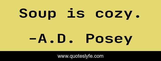"A.D. Posey Quotes." Quoteslyfe.com, 2025. Sat. 06 Dec. 2025. <https://www.quoteslyfe.com/quote/Soup-is-cozy-44795>.