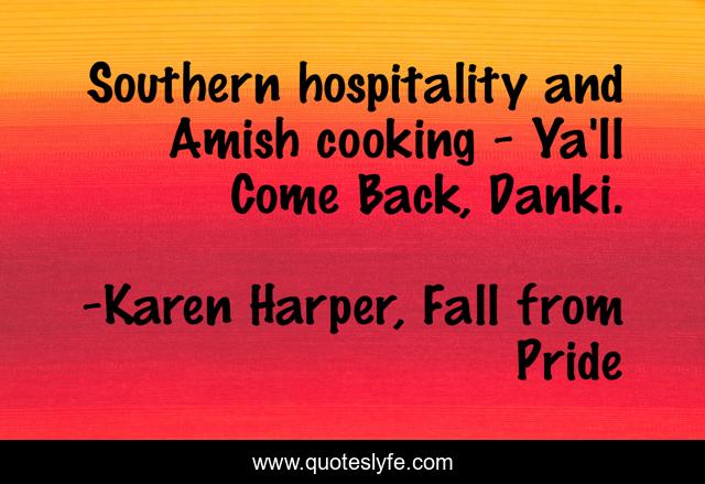 "Karen Harper, Fall from Pride Quotes." Quoteslyfe.com, 2025. Sun. 07 Dec. 2025. <https://www.quoteslyfe.com/quote/Southern-hospitality-and-Amish-cooking-Ya-ll-84473>.