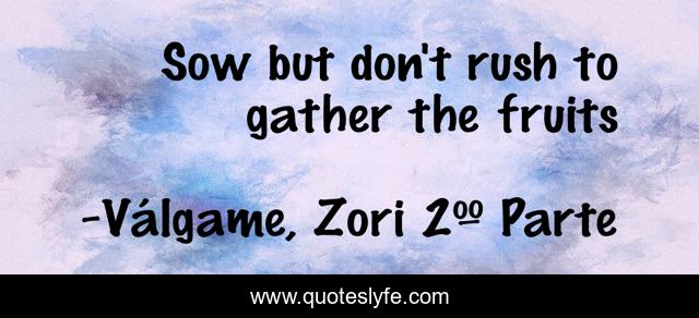 This page presents the quote "Sow but don't rush to gather the fruits". Author of this quote is Válgame, Zori 2ª Parte. .