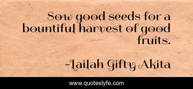 "Lailah Gifty Akita Quotes." Quoteslyfe.com, 2025. Mon. 08 Dec. 2025. <https://www.quoteslyfe.com/quote/Sow-good-seeds-for-a-bountiful-harvest-123837>.