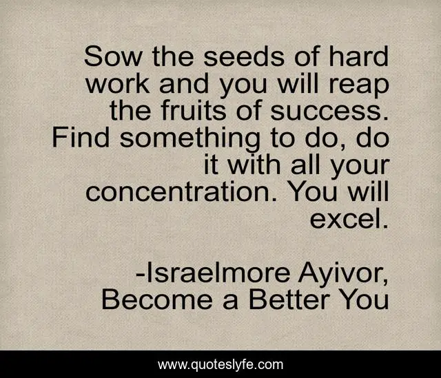 "Israelmore Ayivor, Become a Better You Quotes." Quoteslyfe.com, 2025. Sat. 06 Dec. 2025. <https://www.quoteslyfe.com/quote/Sow-the-seeds-of-hard-work-and-32829>.