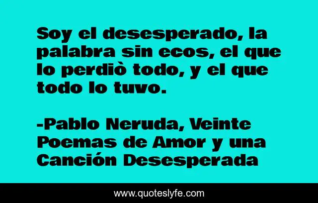 "Pablo Neruda, Veinte Poemas de Amor y una Canción Desesperada Quotes." Quoteslyfe.com, 2025. Fri. 05 Dec. 2025. <https://www.quoteslyfe.com/quote/Soy-el-desesperado-la-palabra-sin-ecos-24822>.