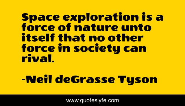 This page presents the quote "Space exploration is a force of nature unto itself that no other force in society can rival.". Author of this quote is Neil deGrasse Tyson. This quote is about society, exploration, nature,.