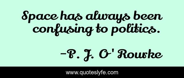 This page presents the quote "Space has always been confusing to politics.". Author of this quote is P. J. O'Rourke. This quote is about always, politics, confusing,.