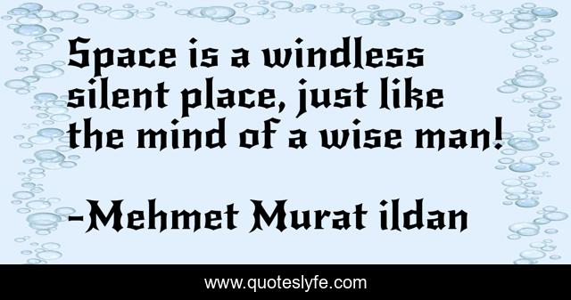 This page presents the quote "Space is a windless silent place, just like the mind of a wise man!". Author of this quote is Mehmet Murat ildan. .
