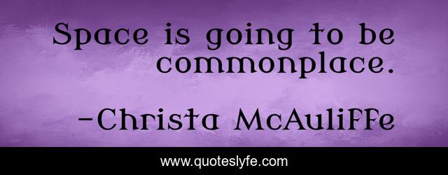 This page presents the quote "Space is going to be commonplace.". Author of this quote is Christa McAuliffe. This quote is about going, commonplace,.