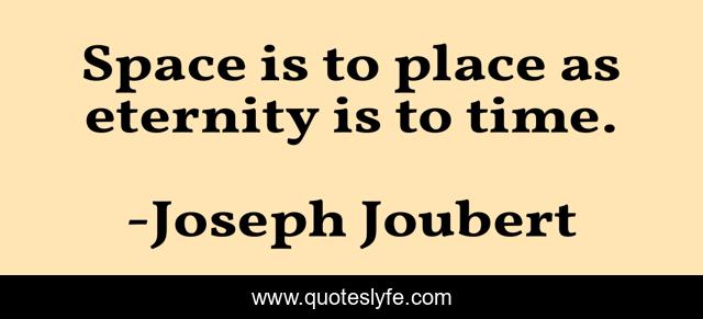 This page presents the quote "Space is to place as eternity is to time.". Author of this quote is Joseph Joubert. This quote is about eternity, place, time,.
