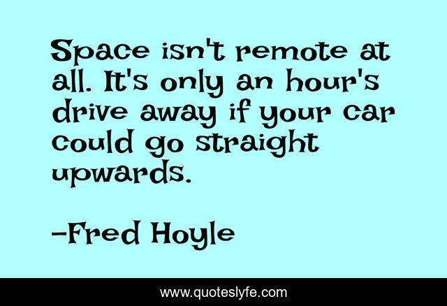 This page presents the quote "Space isn't remote at all. It's only an hour's drive away if your car could go straight upwards.". Author of this quote is Fred Hoyle. This quote is about science, technology,.
