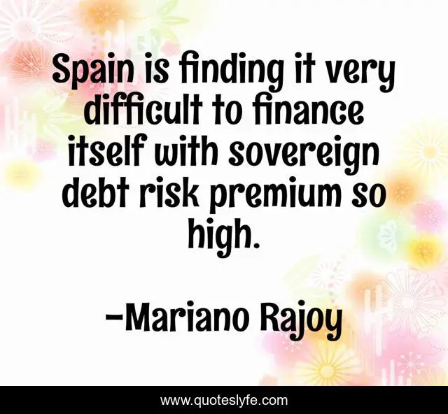 This page presents the quote "Spain is finding it very difficult to finance itself with sovereign debt risk premium so high.". Author of this quote is Mariano Rajoy. This quote is about finding, debt, risk,.