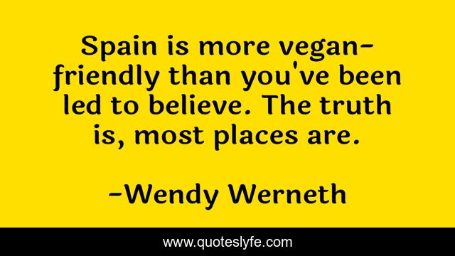 "Wendy Werneth Quotes." Quoteslyfe.com, 2025. Fri. 05 Dec. 2025. <https://www.quoteslyfe.com/quote/Spain-is-more-vegan-friendly-than-you-137020>.