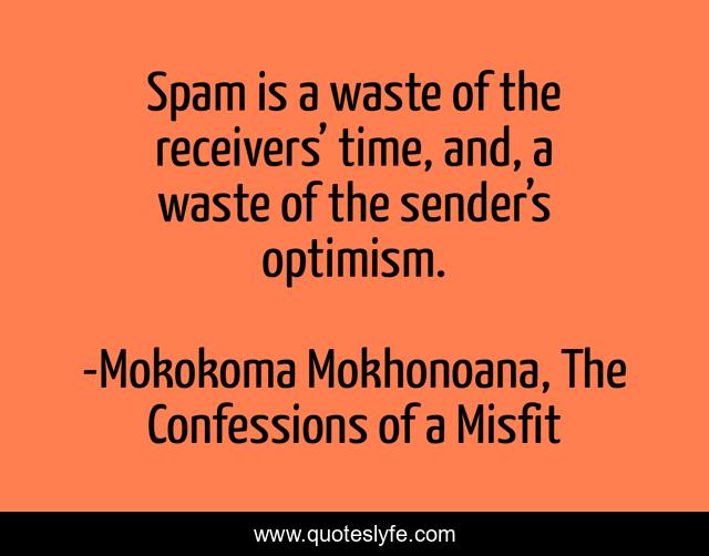 "Mokokoma Mokhonoana, The Confessions of a Misfit Quotes." Quoteslyfe.com, 2025. Mon. 08 Dec. 2025. <https://www.quoteslyfe.com/quote/Spam-is-a-waste-of-the-receivers-181061>.