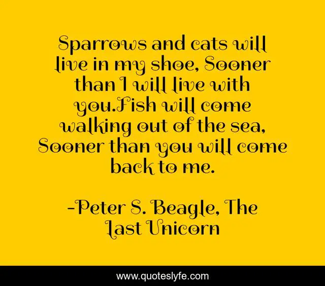 "Peter S. Beagle, The Last Unicorn Quotes." Quoteslyfe.com, 2025. Fri. 05 Dec. 2025. <https://www.quoteslyfe.com/quote/Sparrows-and-cats-will-live-in-my-24433>.