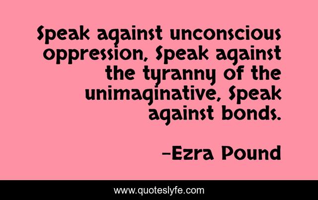 "Ezra Pound Quotes." Quoteslyfe.com, 2025. Mon. 08 Dec. 2025. <https://www.quoteslyfe.com/quote/Speak-against-unconscious-oppression-Speak-against-the-24355>.