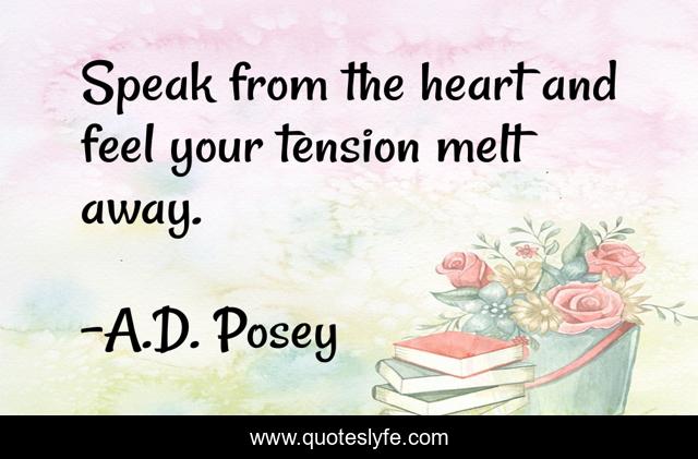This page presents the quote "Speak from the heart and feel your tension melt away.". Author of this quote is A.D. Posey. This quote is about heart, storytelling, feel, storytellers, writing, write, writers, ad-posey, inspirational,.
