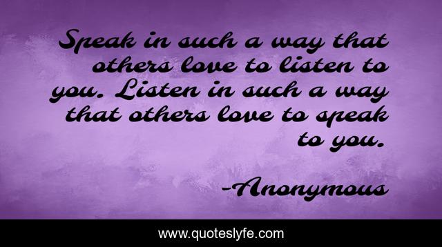 This page presents the quote "Speak in such a way that others love to listen to you. Listen in such a way that others love to speak to you.". Author of this quote is Anonymous. This quote is about listening, listening-skills,.