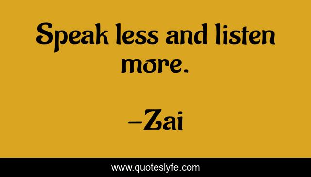 "Zai Quotes." Quoteslyfe.com, 2025. Sat. 06 Dec. 2025. <https://www.quoteslyfe.com/quote/Speak-less-and-listen-more-173852>.
