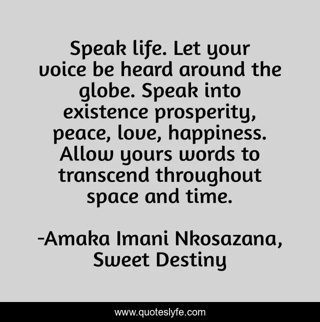 "Amaka Imani Nkosazana, Sweet Destiny Quotes." Quoteslyfe.com, 2025. Tue. 09 Dec. 2025. <https://www.quoteslyfe.com/quote/Speak-life-Let-your-voice-be-heard-89860>.