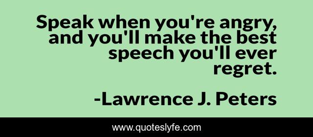 This page presents the quote "Speak when you're angry, and you'll make the best speech you'll ever regret.". Author of this quote is Lawrence J. Peters. This quote is about regret, speak,.