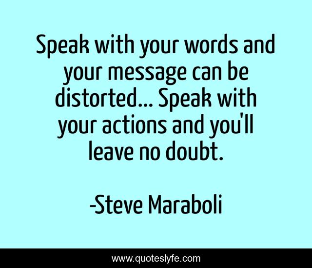 This page presents the quote "Speak with your words and your message can be distorted... Speak with your actions and you'll leave no doubt.". Author of this quote is Steve Maraboli. This quote is about actions, behavior,.
