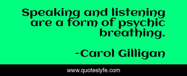 This page presents the quote "Speaking and listening are a form of psychic breathing.". Author of this quote is Carol Gilligan. .
