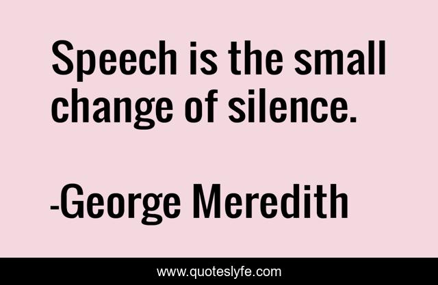 "George Meredith Quotes." Quoteslyfe.com, 2025. Sat. 06 Dec. 2025. <https://www.quoteslyfe.com/quote/Speech-is-the-small-change-of-silence-276674>.